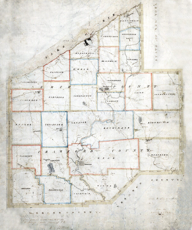 1816 Map of Erie and Crawford County Pennsylvania - 20" x 24" Matte is backordered and will ship as soon as it is back in stock.