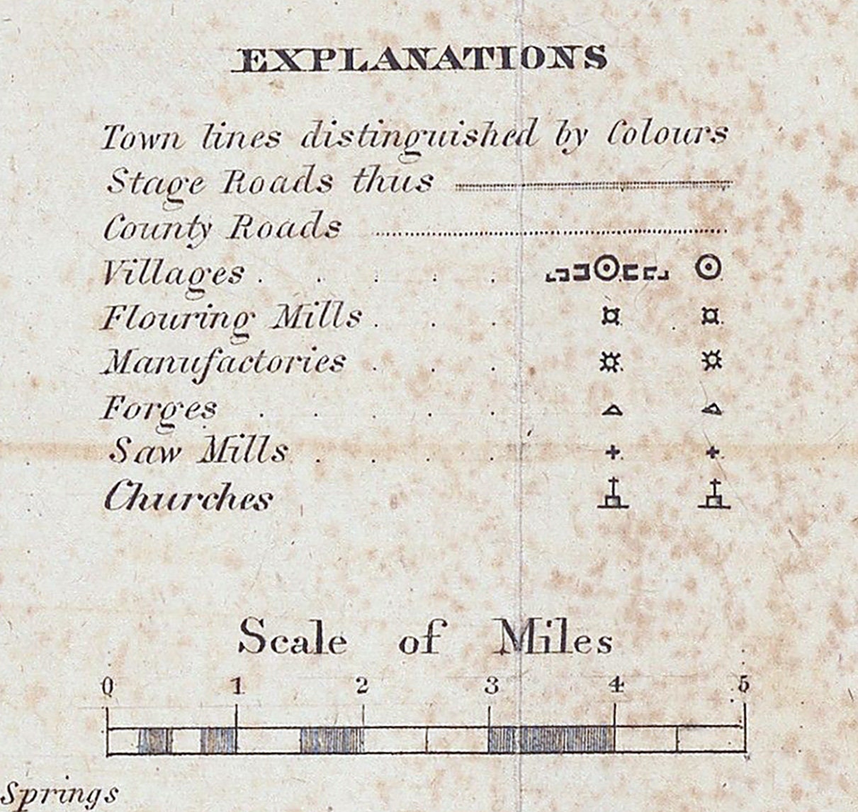 This map shows towns, roads, churches, mills, historic places, water ways, and more.