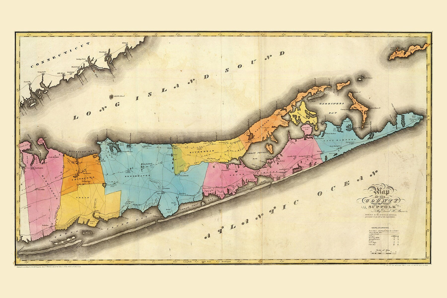 1829 Map of Suffolk County New York