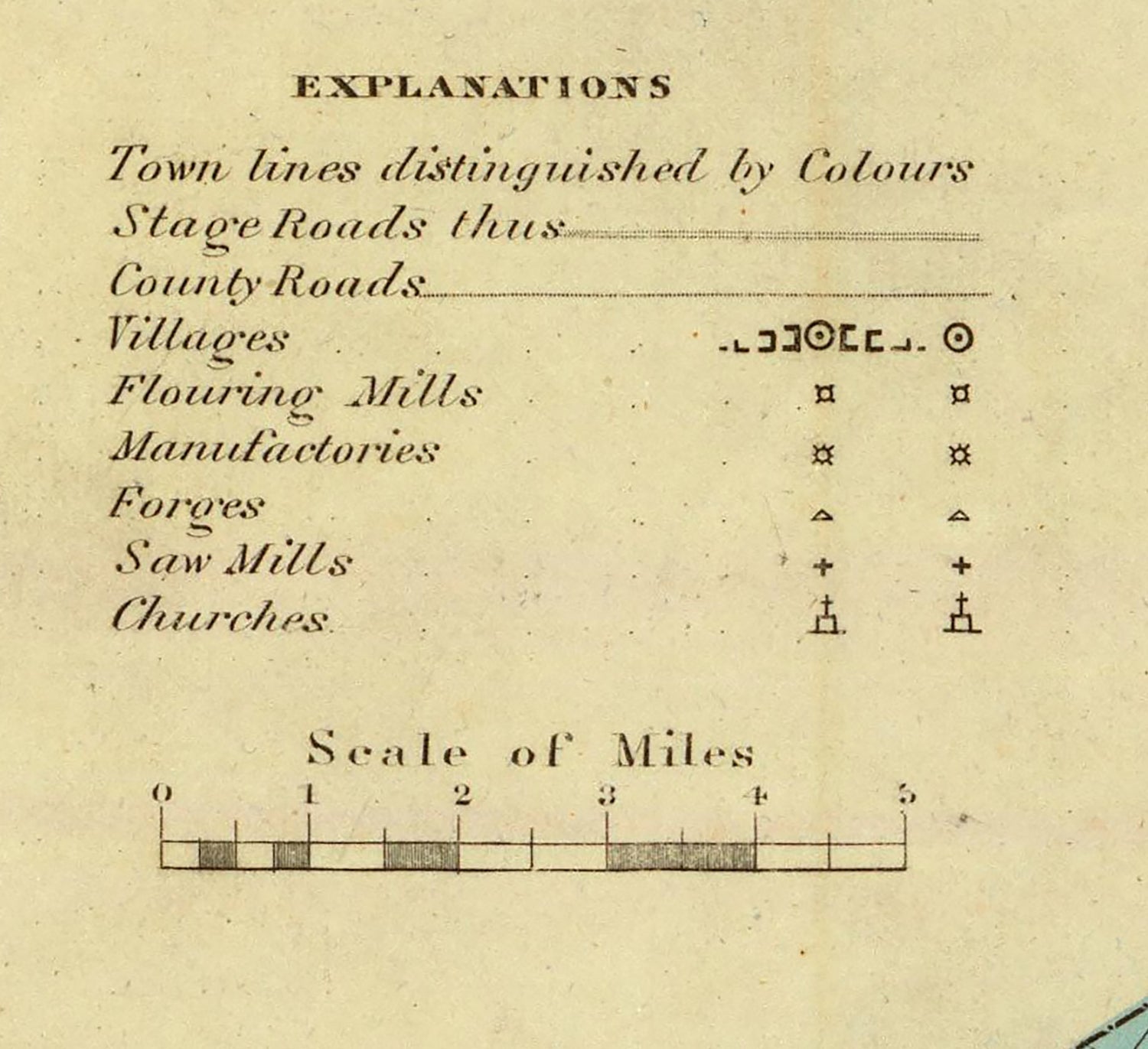 This map shows towns, villages, roads, mills, churches, property boundary lines, and more.