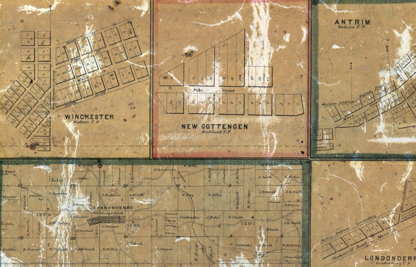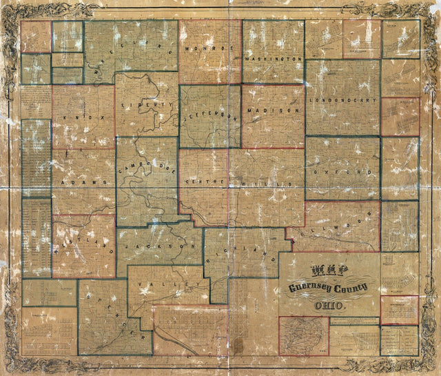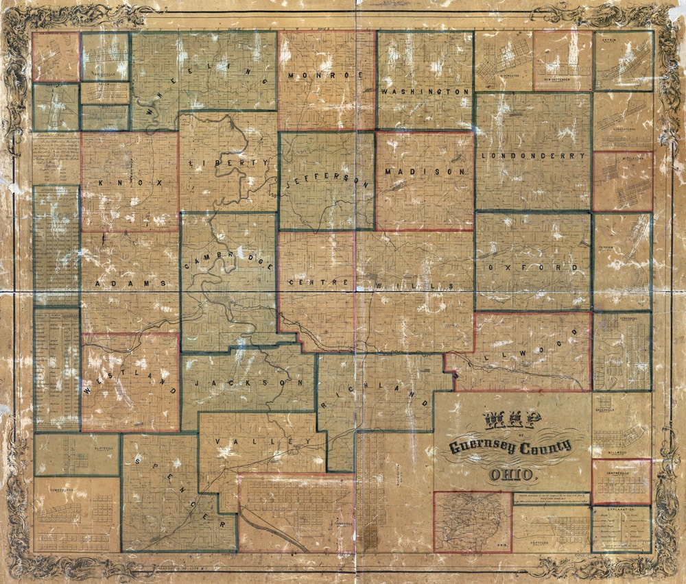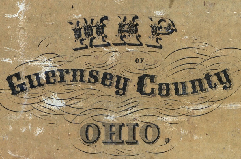 1855 Farm Line Map of Guernsey County Ohio Cambridge