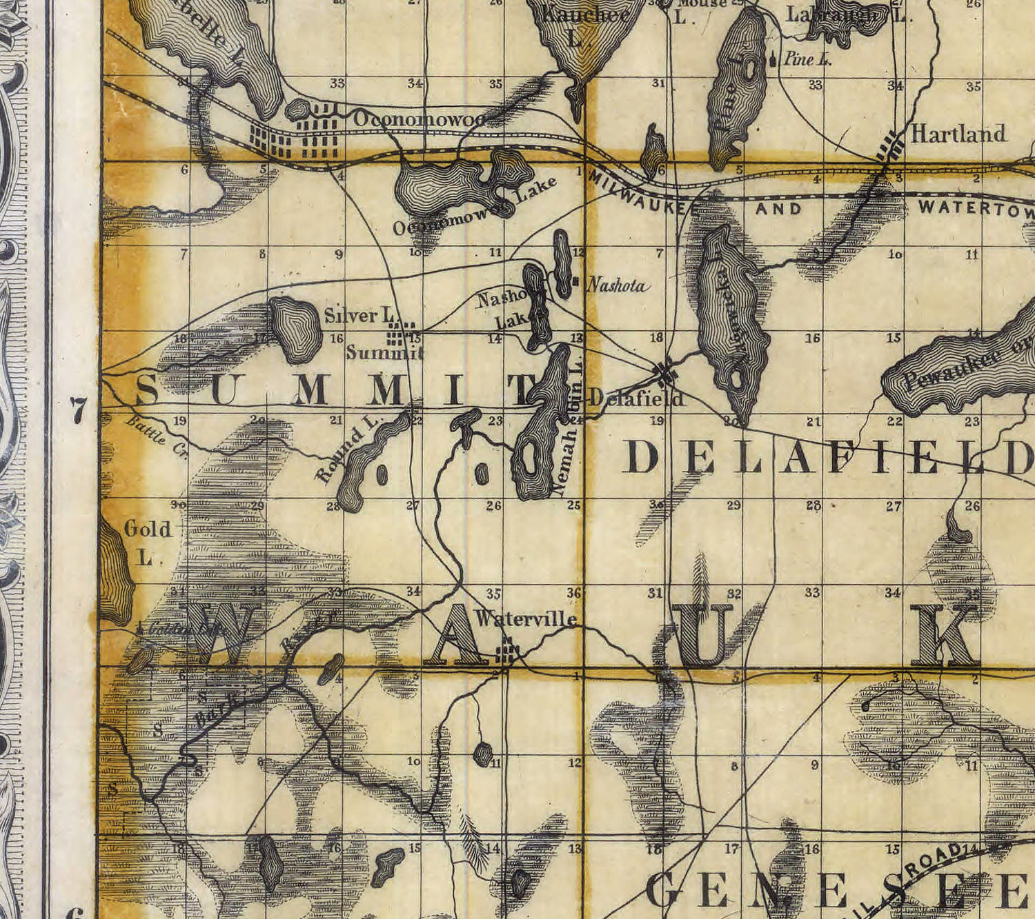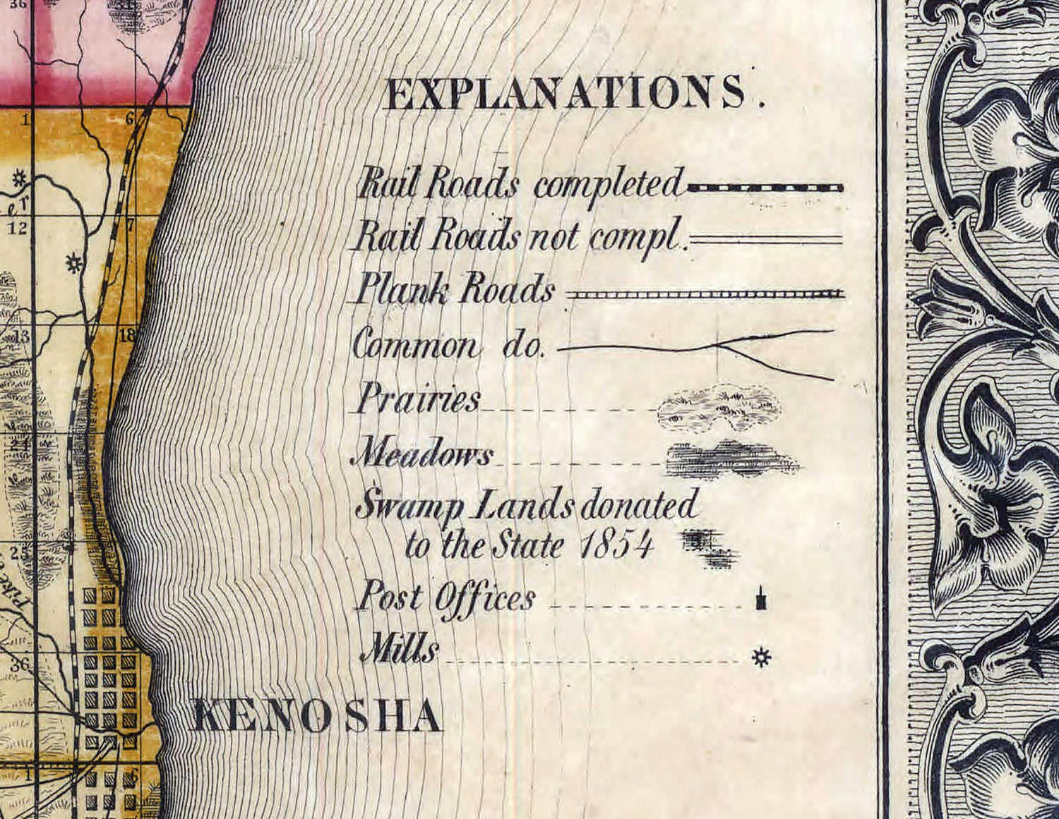 1855 Map of the Counties of Milwaukee Waukesha Racine Kenosha Walworth Wisconsin