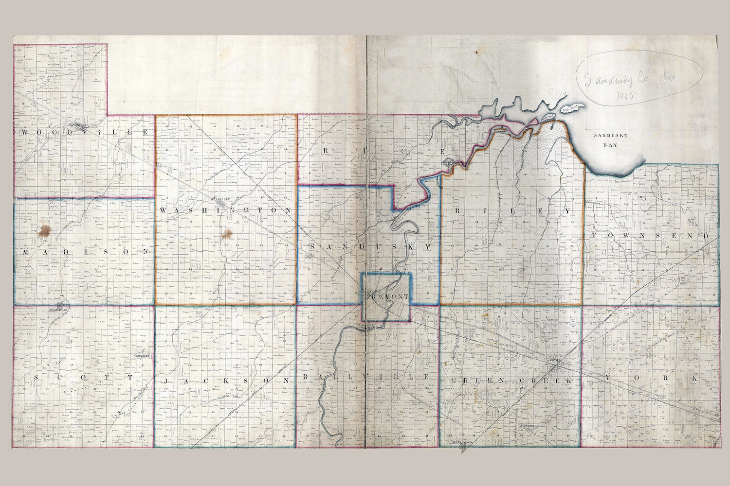 1856 Farm Line Map of Sandusky County Ohio - 16" x 24" Matte is backordered and will ship as soon as it is back in stock.