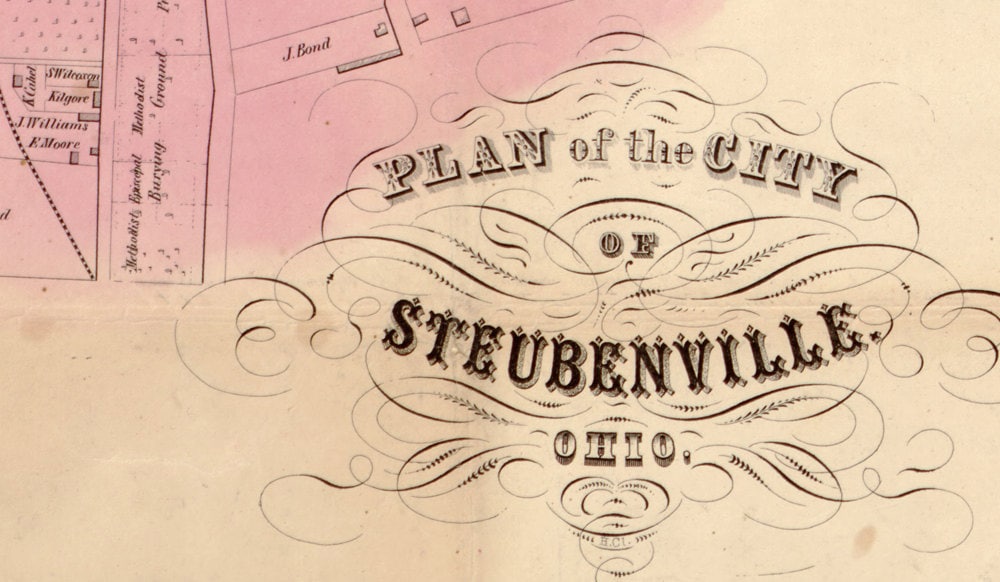 This is a great looking farm line map of the county. Also shows inset maps of the major towns like Steubenville.