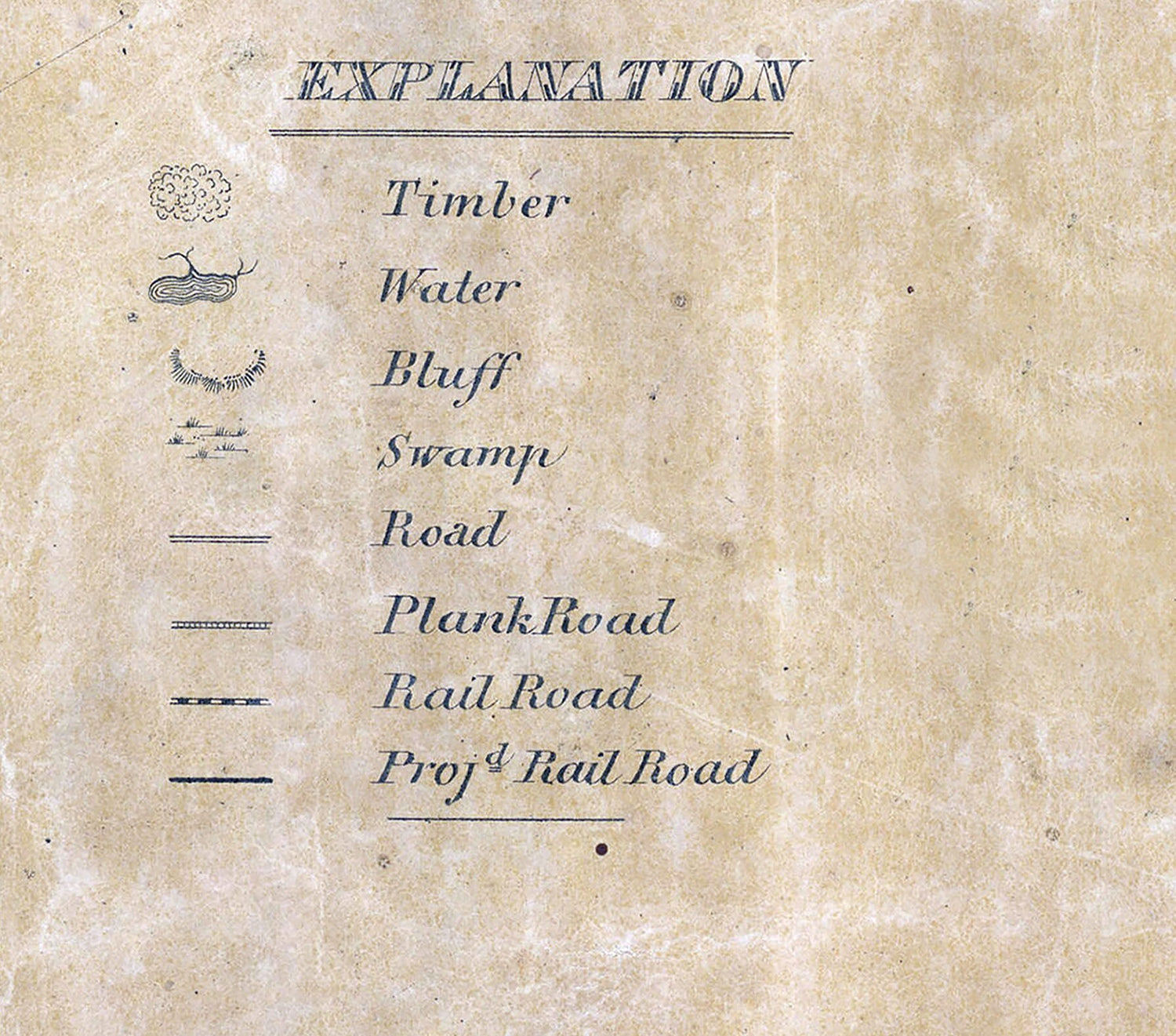This map shows towns, roads, rail roads, water ways, historic places, and more.