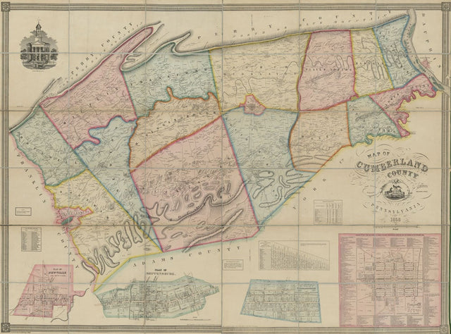 1858 Map of Cumberland County PA from actual surveys Carlisle Shippensburg