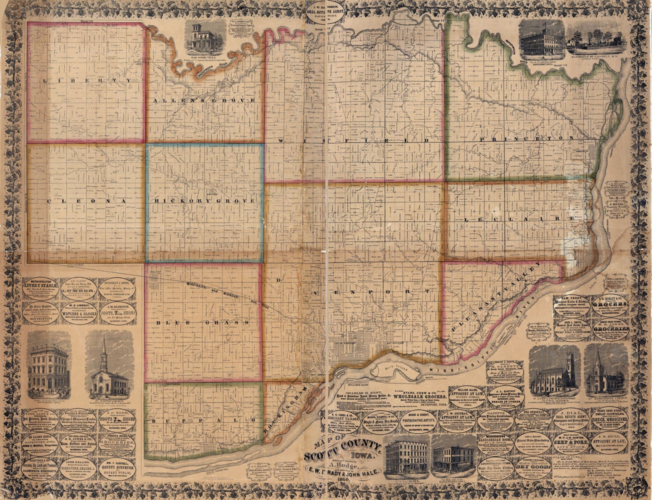 1860 Farm Line Map of Scott County Iowa - 23" x 30" inches is backordered and will ship as soon as it is back in stock.
