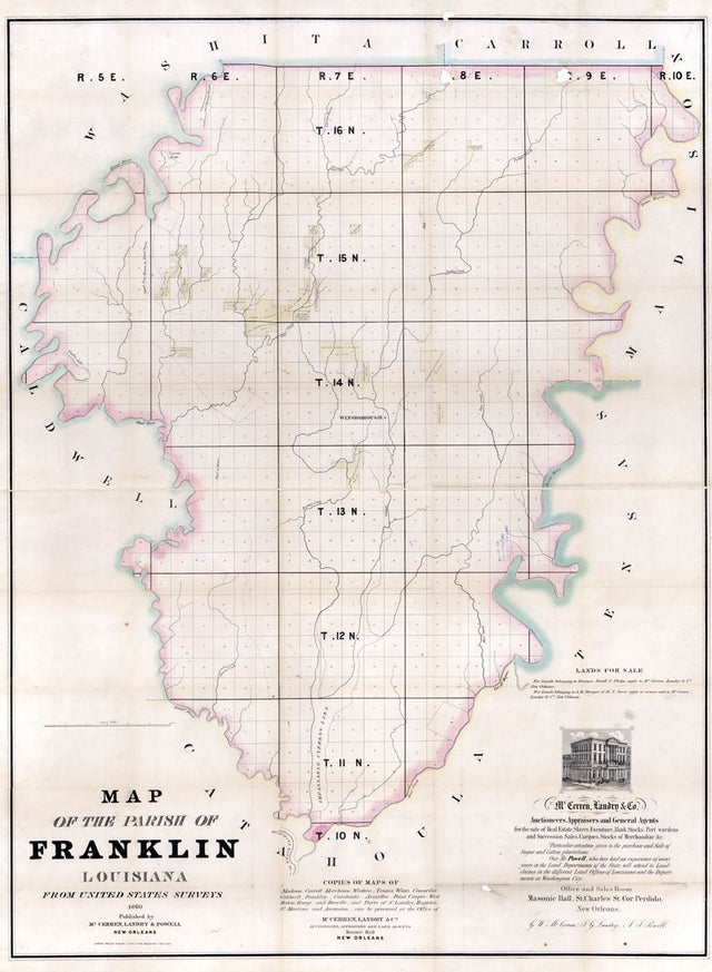 1860 Map of Franklin Parish (County) Louisiana Winnsboro