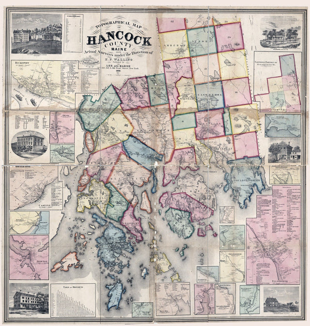 1860 Map of Hancock County Maine Ellsworth Genealogy