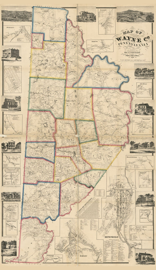 1860 Map of Wayne County Pa Honesdale Hawley Roll Map Genealogy
