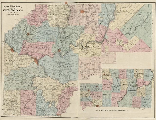 1865 Farm Line Map of Venango County PA with Warren & Part of Crawford Co