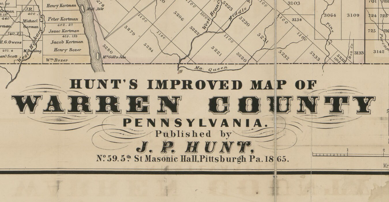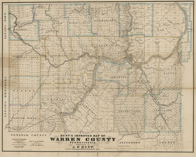 1865 Farm Line Map of Warren County, Pa (Hunts Improved Map)