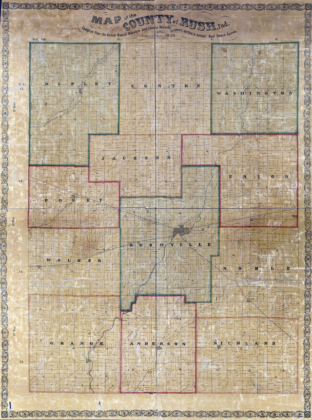 1866 Farm Line Map of Rush County Indiana - 22" x 30" inches is backordered and will ship as soon as it is back in stock.
