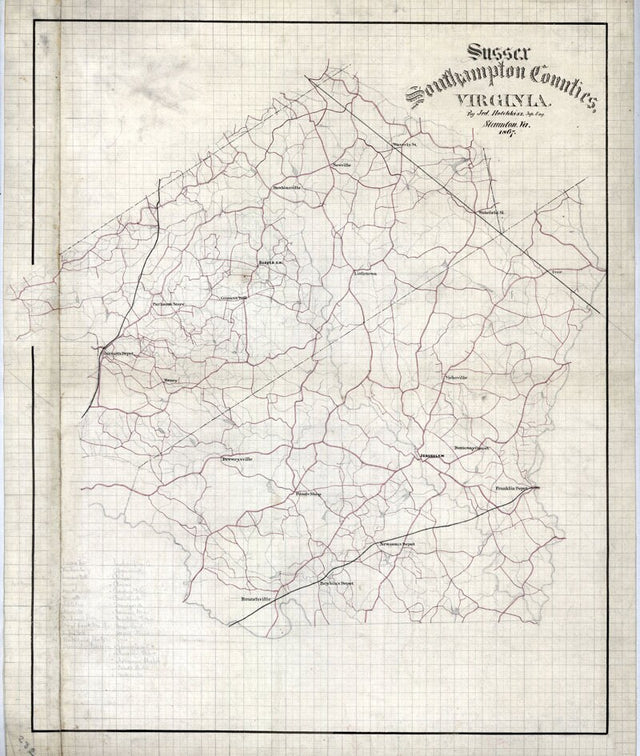 1867 Map of Sussex and Southampton County Virginia