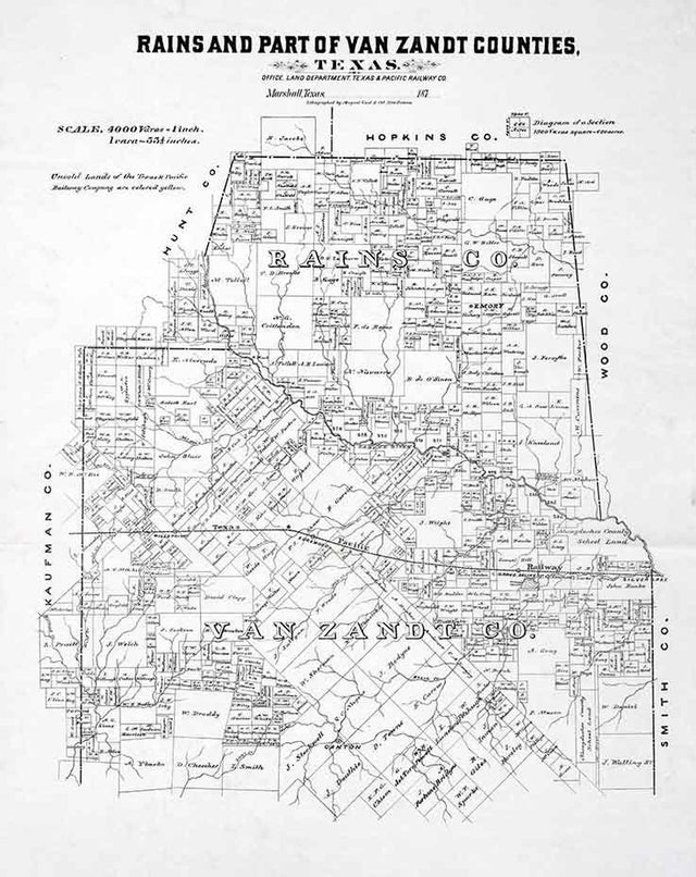 1870 Farm Line Map of Rains and Part of Van Zandt County Texas - 16"x20"Matte is backordered and will ship as soon as it is back in stock.