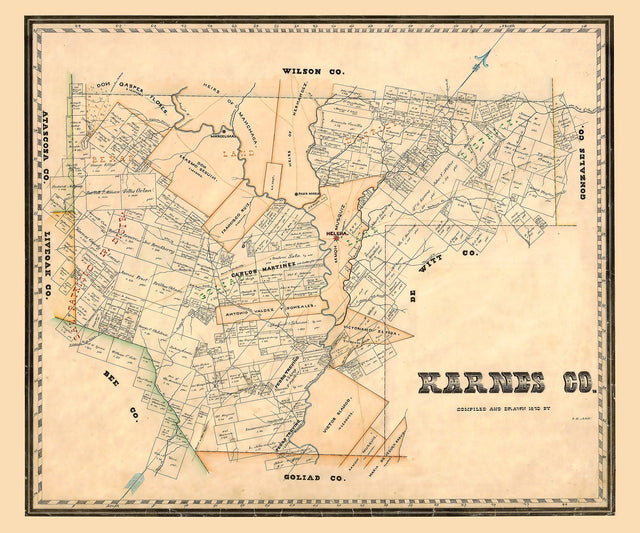 1870 Farm Lines Map of Karnes County Texas - 20" x 24" Matte is backordered and will ship as soon as it is back in stock.