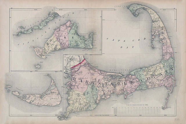 1870 Map of Barnstable County Massachusetts Nantucket Marthas Vineyard