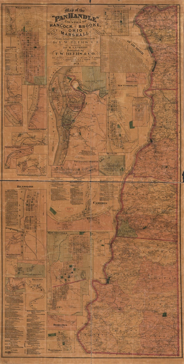 1871 Map of the Panhandle - Hancock ,Brooke, Ohio, & Marshall Counties, West Virginia