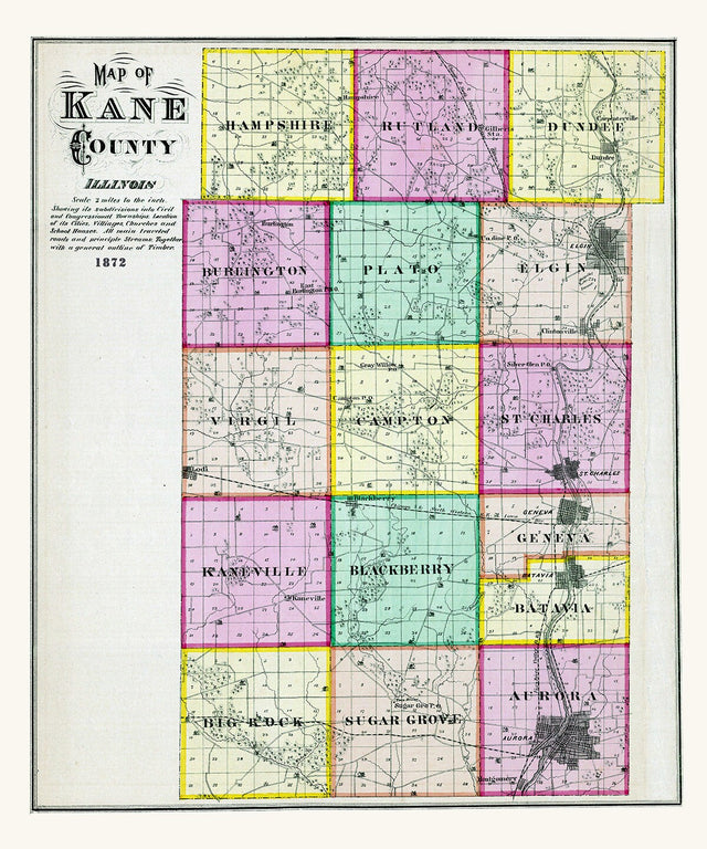 1872 Map of Kane County Illinois - 16" x 20" Matte is backordered and will ship as soon as it is back in stock.