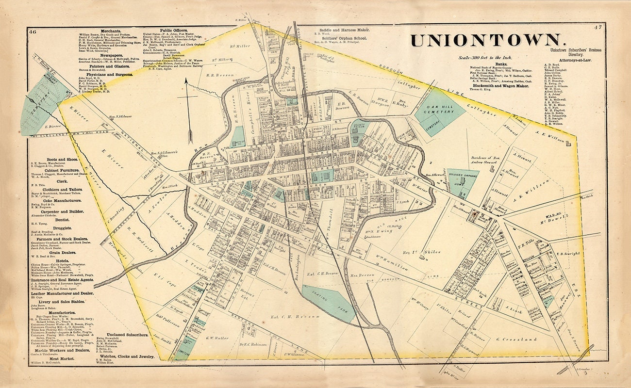 1872 Map of Uniontown Fayette County PA - Heavy Weight Matte is backordered and will ship as soon as it is back in stock.