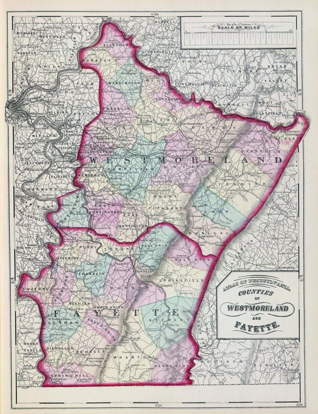 1872 Map of Westmoreland & Fayette County Pennsylvania