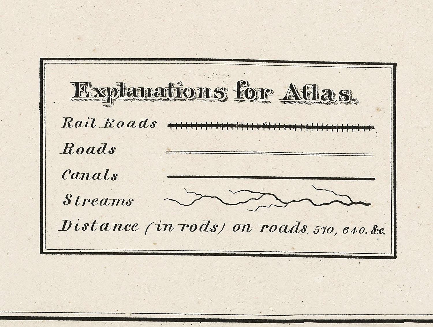 This map shows towns, roads, railroads, terrain, water ways, canals, and more.