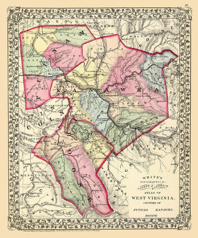 1873 Map of Putnam Kanawha and Boone County West Virginia - 20" x 24" Matte is backordered and will ship as soon as it is back in stock.