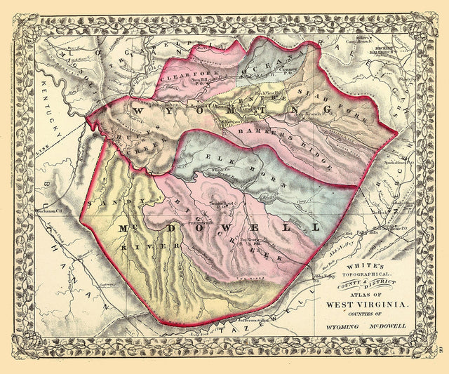 1873 Map of Wyoming and McDowell County West Virginia - 20" x 24" Matte is backordered and will ship as soon as it is back in stock.