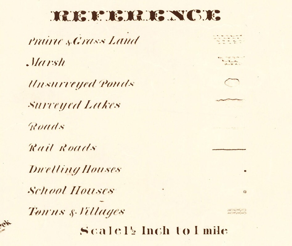 This map shows rivers, boundary lines, towns, family names, buildings, schools, roads, rail roads, and more.
