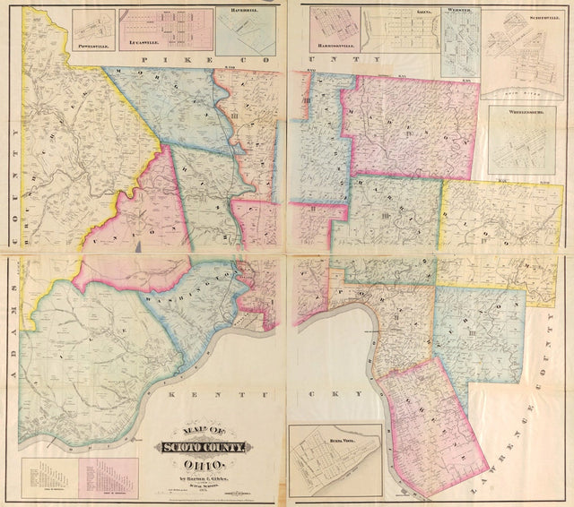 1875 Farm Line Map of Scioto County Ohio Portsmouth