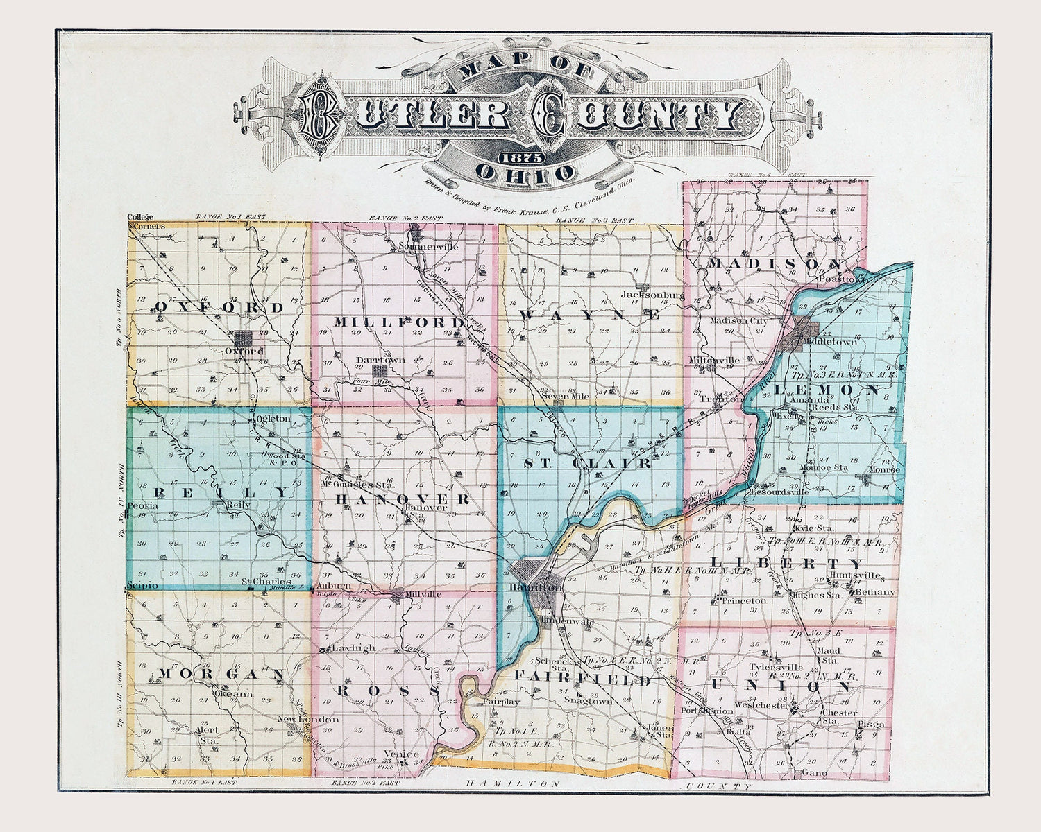 1875 Map of Butler County Ohio