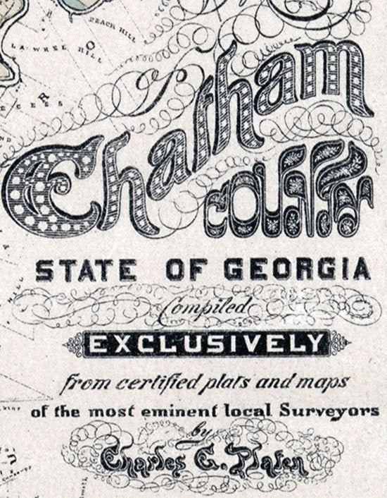 1875 Map of Chatham County Georgia Savannah Reproduction