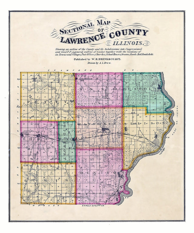 1875 Map of Lawrence County Illinois - 16" x 20" Matte is backordered and will ship as soon as it is back in stock.