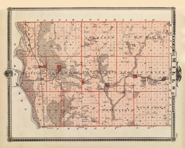 1875 Map of Mills County Iowa - 16" x 20" Matte is backordered and will ship as soon as it is back in stock.