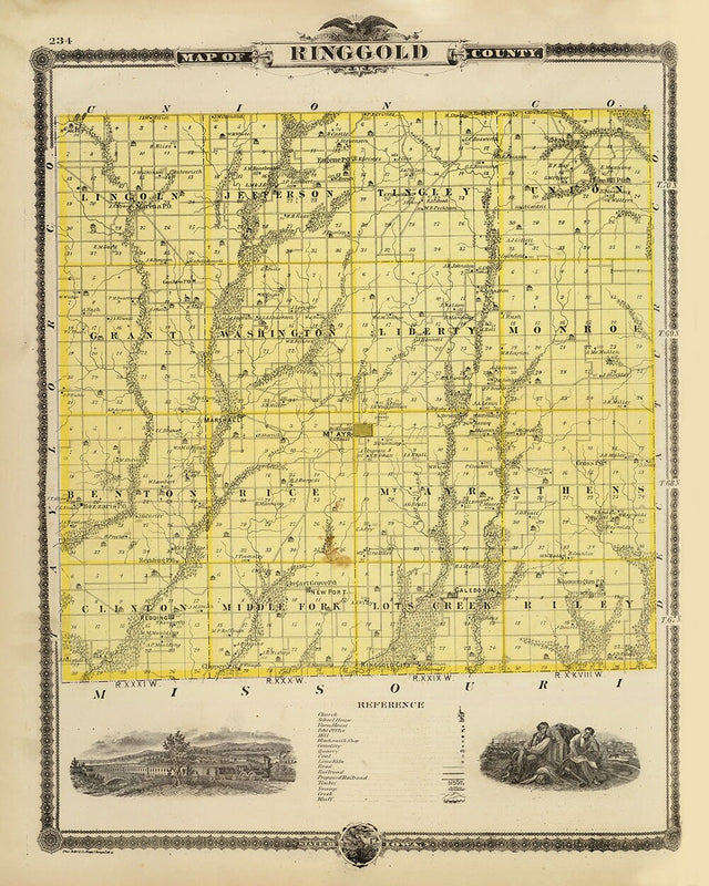 1875 Map of Ringgold County Iowa - 16" x 20" Matte is backordered and will ship as soon as it is back in stock.