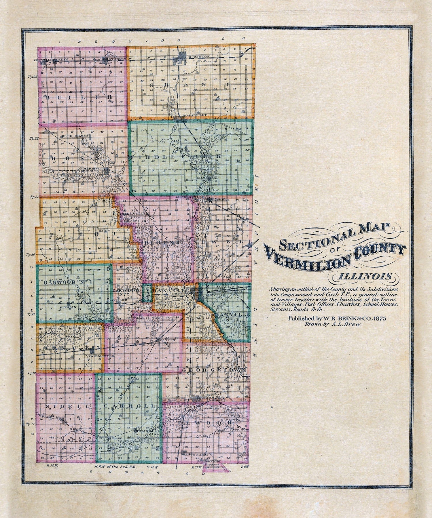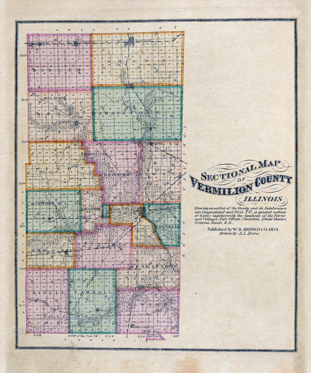 1875 Map of Vermilion County Illinois - 16" x 20" Matte is backordered and will ship as soon as it is back in stock.