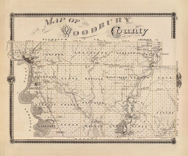 1875 Map of Woodbury County Iowa - 16" x 20" Matte is backordered and will ship as soon as it is back in stock.