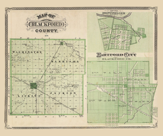 1876 Map of Blackford County Indiana Hartford City - 16" x 20" Matte is backordered and will ship as soon as it is back in stock.