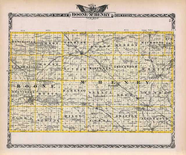 1876 Map of Boone and McHenry County Illinois - 20" x 24" Matte is backordered and will ship as soon as it is back in stock.