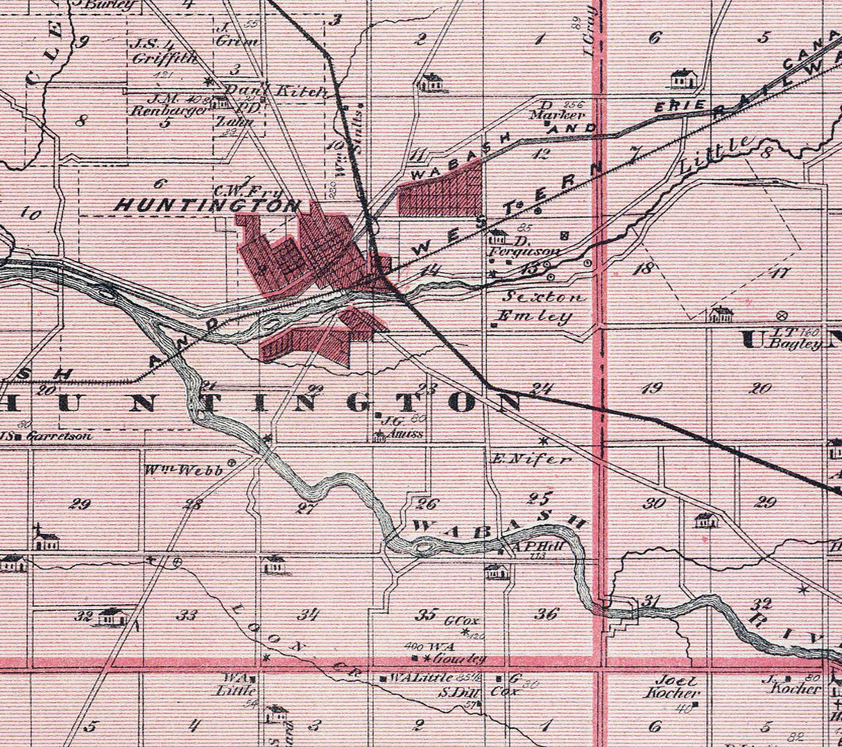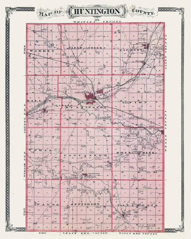 1876 Map of Huntington County Indiana