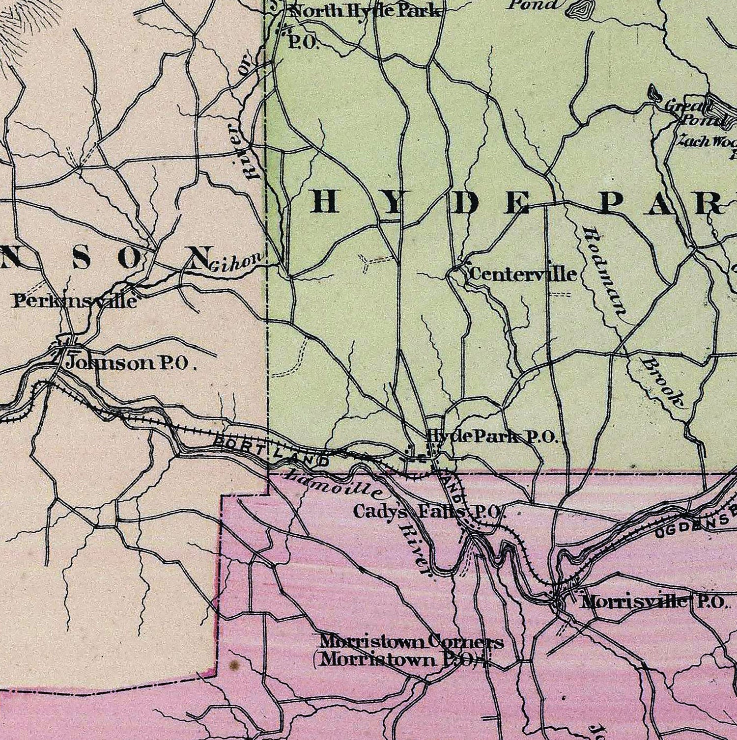This map shows towns, roads, railroads, water ways, place names, and more.