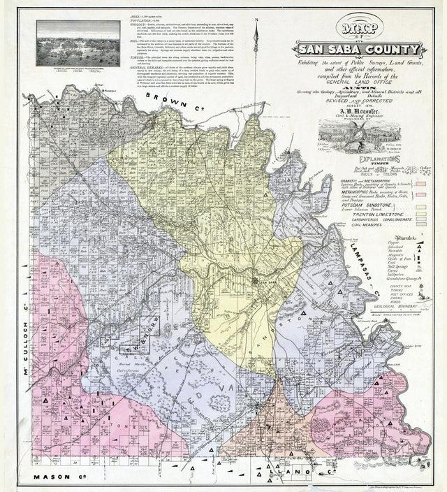 1876 Map of San Saba County Texas - 22"x24" Matte is backordered and will ship as soon as it is back in stock.