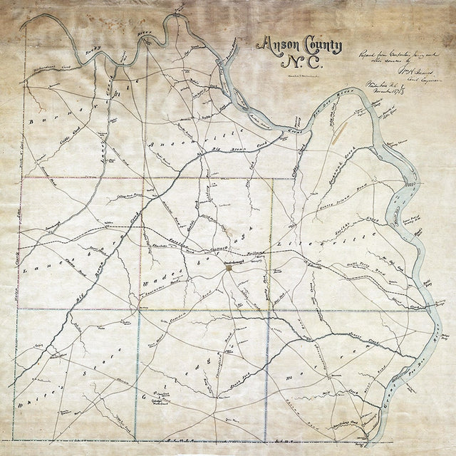 1878 Map of Anson County North Carolina - 20" x 20" Matte is backordered and will ship as soon as it is back in stock.