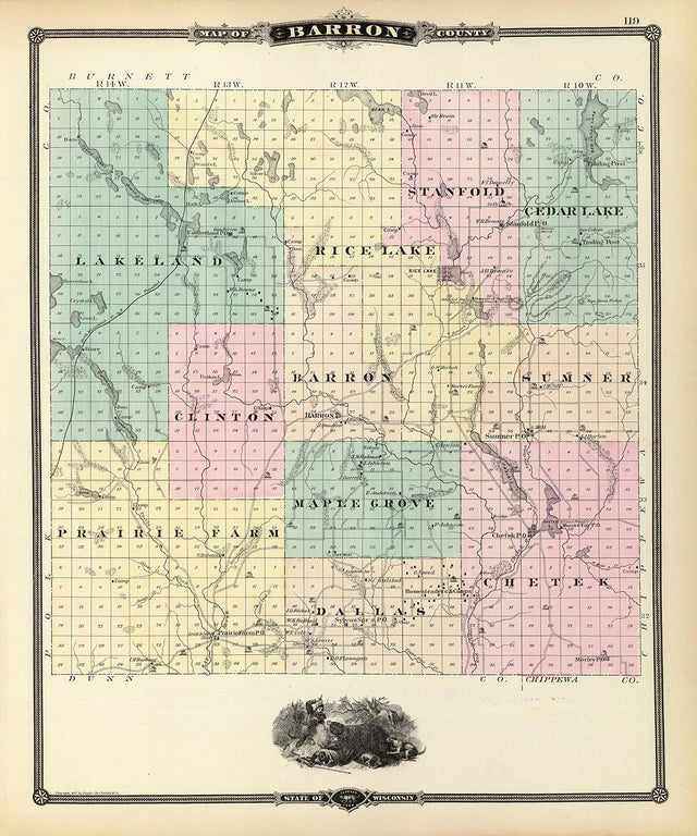 1878 Map of Barron County Wisconsin - 20" x 24" Matte is backordered and will ship as soon as it is back in stock.
