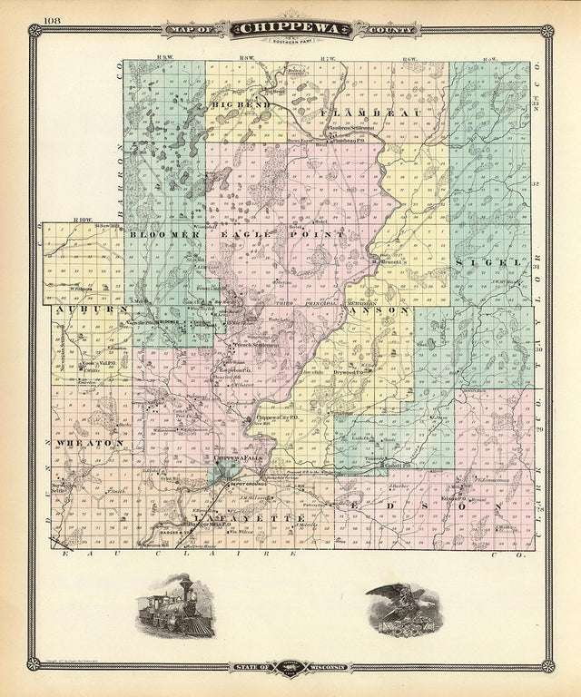 1878 Map of Chippewa County Wisconsin - 20" x 24" Matte is backordered and will ship as soon as it is back in stock.