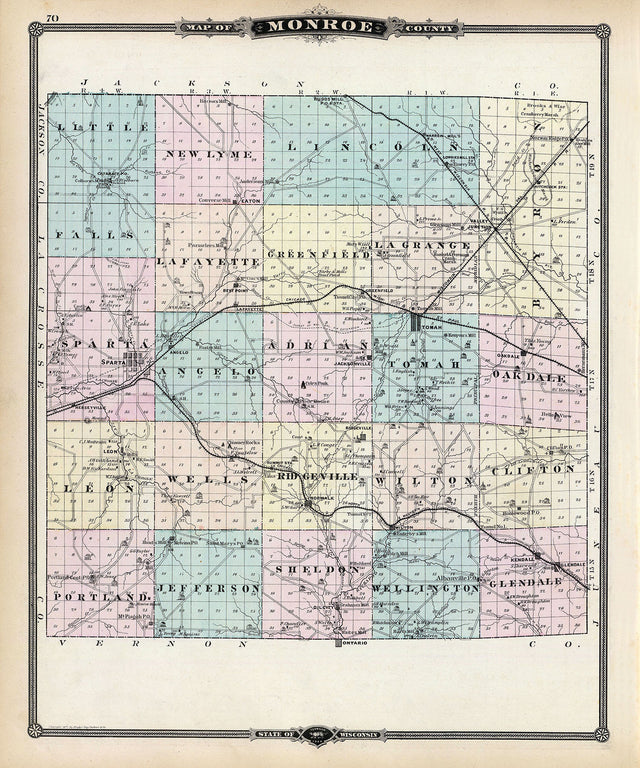 1878 Map of Monroe County Wisconsin