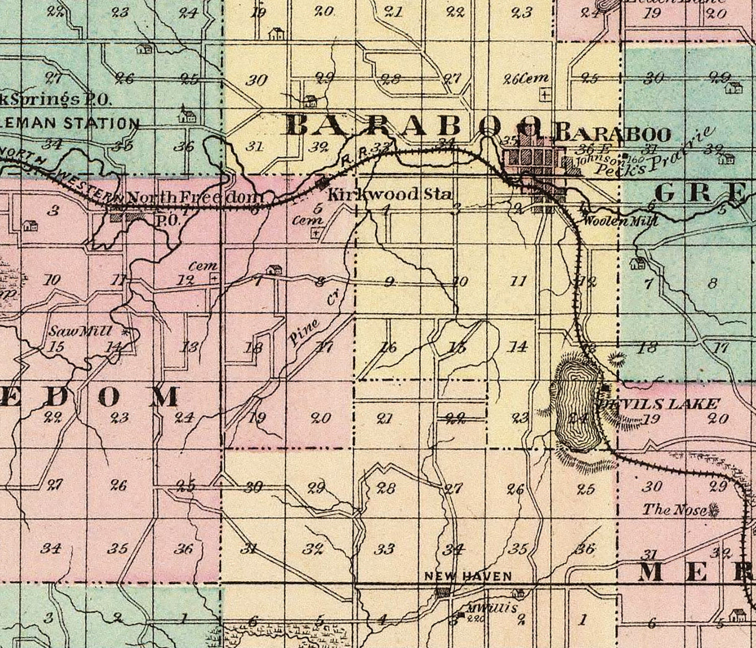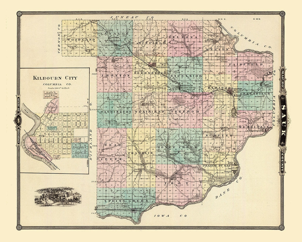 1878 Map of Sauk County Wisconsin