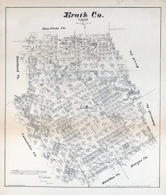 1879 Farm Line Map of Erath County Texas - 22"x26" Matte is backordered and will ship as soon as it is back in stock.