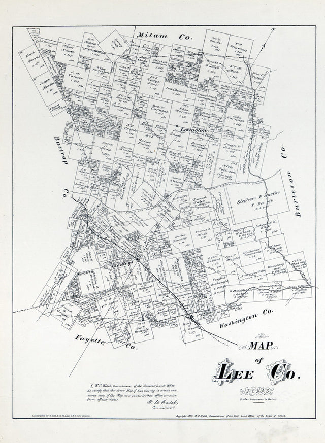 1879 Farm Line Map of Lee County Texas