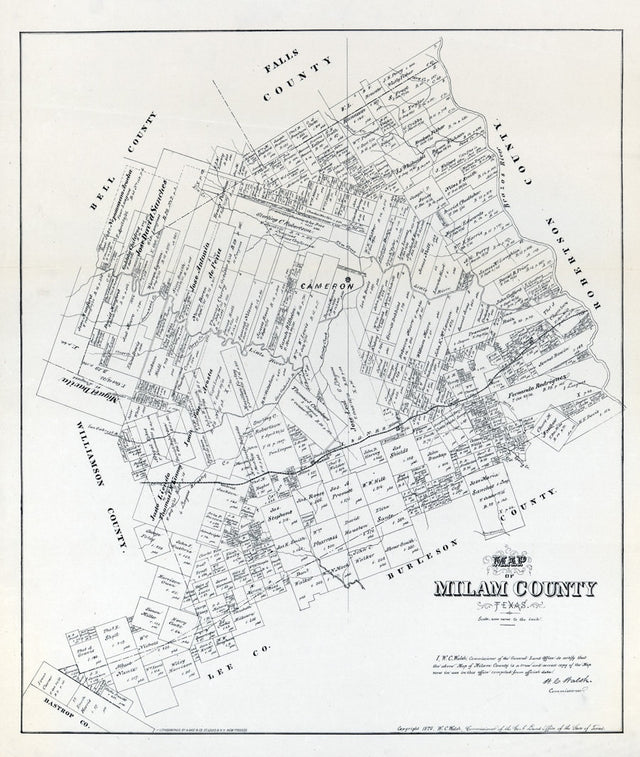1879 Farm Line Map of Milam County Texas - 22"x26" Matte is backordered and will ship as soon as it is back in stock.